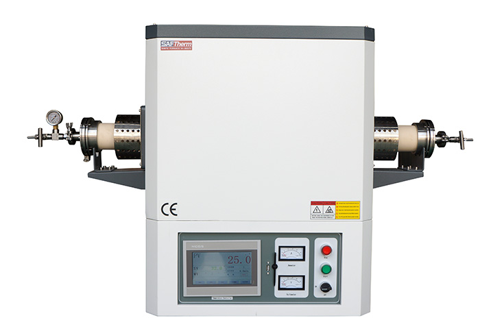 爐管兩端裝有不銹鋼金屬法蘭,配套高溫 PTFE 墊圈,可在真空下進行工作, 真空度≤5pa(旋片式真空泵)